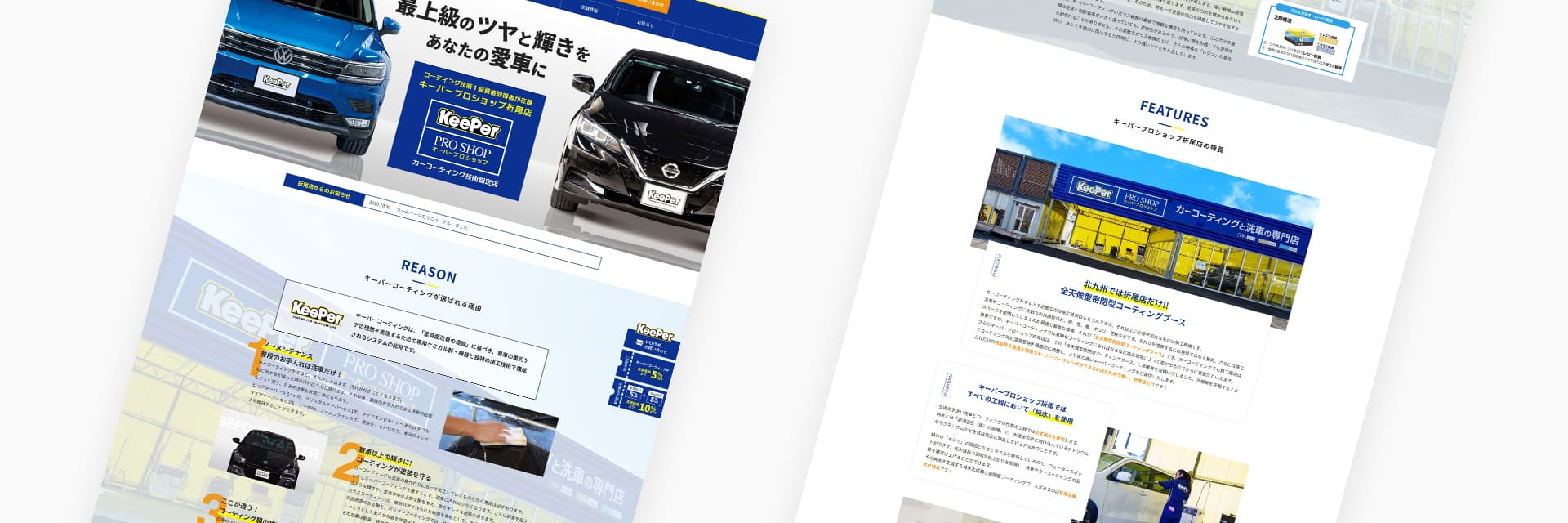 知名度も高いキーパーコーティングは県内や市内に複数ありますが、他店と何が違うのかを明確に打ち出し、メニューの内容・違いを分かりやすく制作しました。また、施工実績やお客様の声などは自社更新が簡単にできるようにカスタマイズさせていただきました。