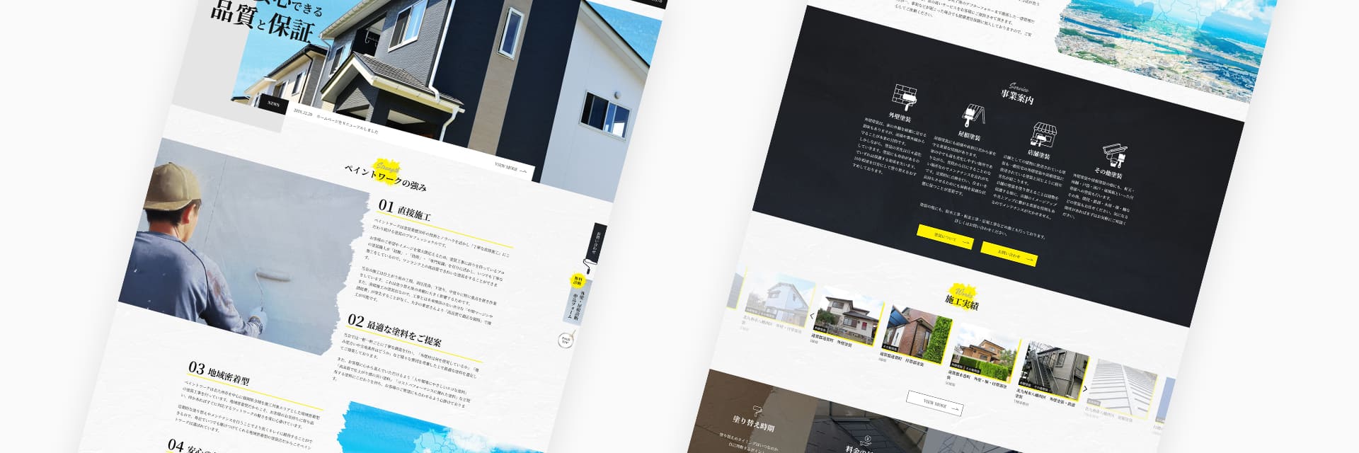 お知らせやブログ、施工実績はお客様にて更新できるようにカスタマイズさせていただき、外壁塗装や屋根塗装についての情報や料金目安、お問い合わせから施工までの内容を充実させました。