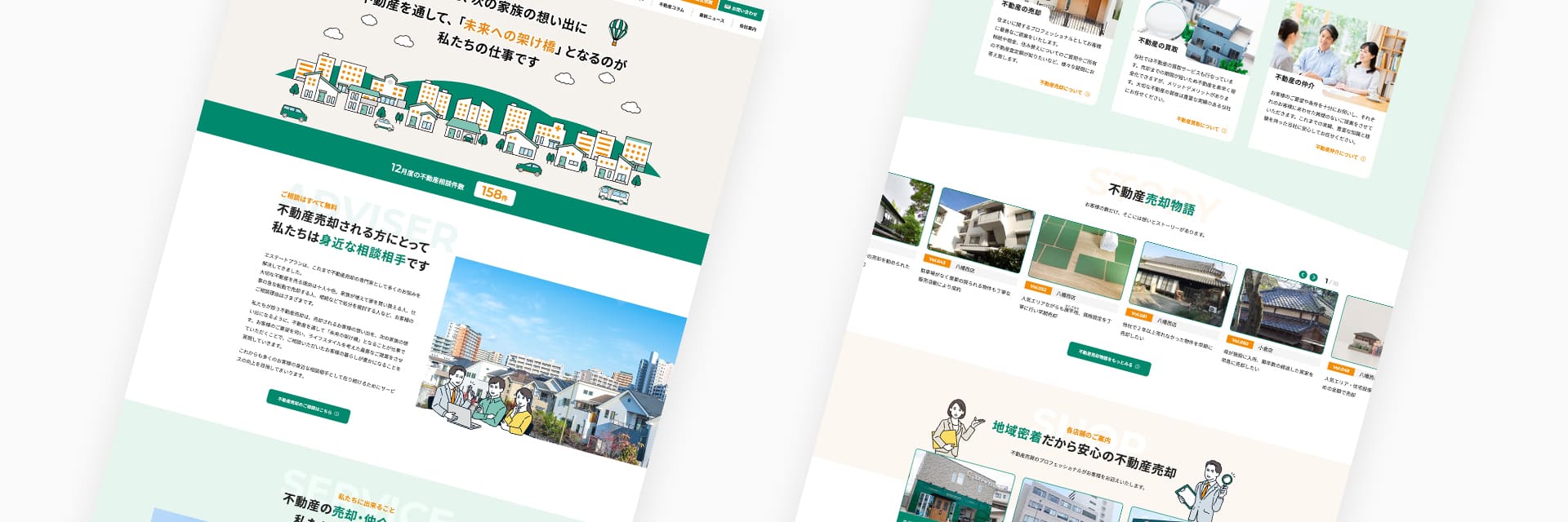 不動産売却というと敷居が高いイメージがあるので、そこを払拭できるようにイラストを取り入れたデザインに仕上げました。サイトの構成はすでにクライアント様で決まっていたので、いかにユーザーの回遊性を上げてコンバージョンに繋げるかを考えて制作しました。