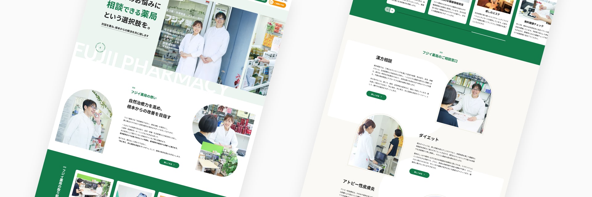 地域の方の日々の小さな悩みや愚痴も気軽に相談できる「まちのくすり屋さん」ということで、親しみやすさと専門性を両立させたホームページとなるよう制作しました。
